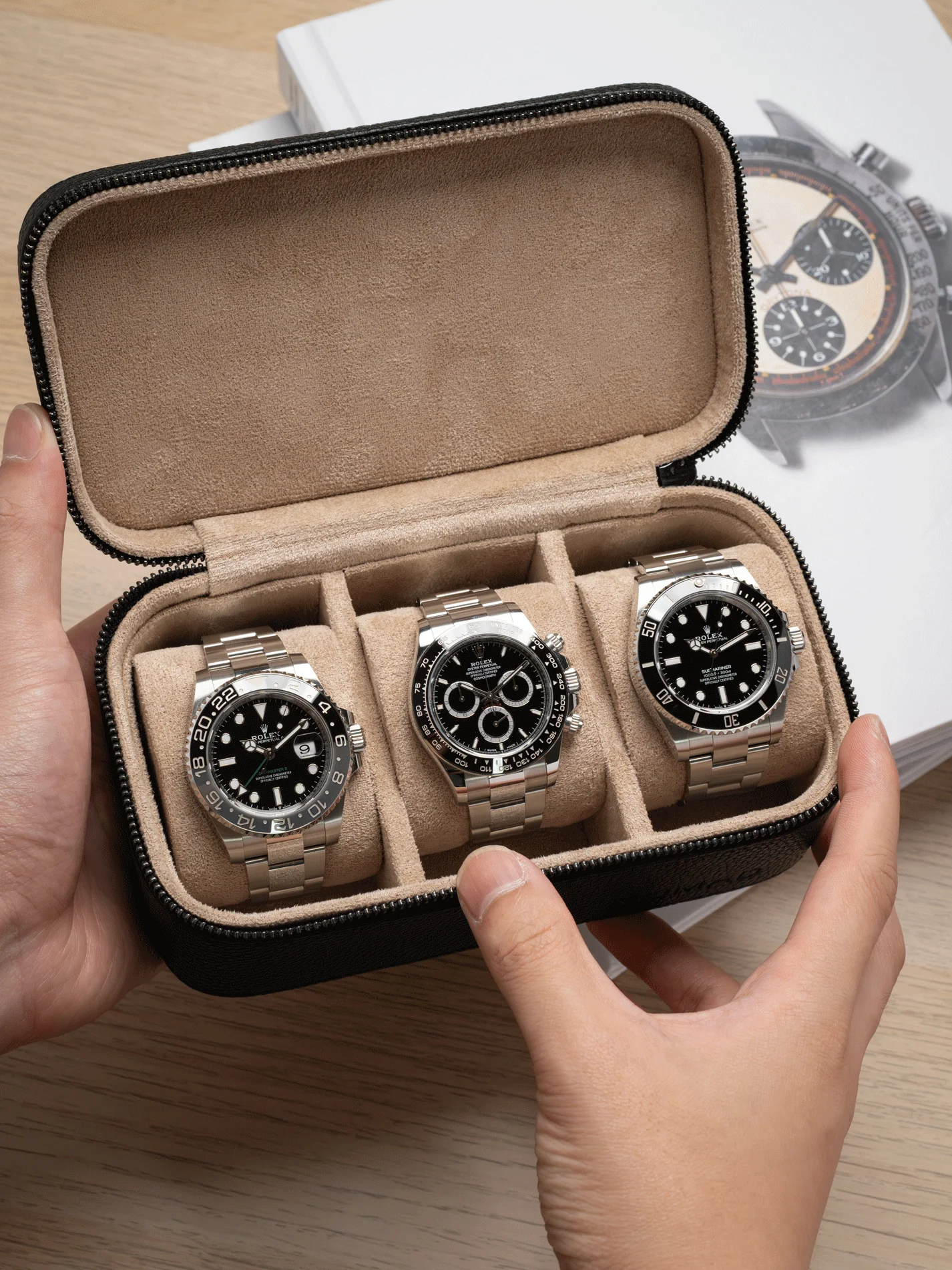 Each compartment fits watches up to 50mm wide